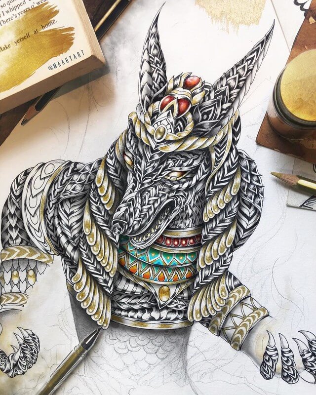 Forget about hairs or feathers, Maldivian artist Maahyart, covers his animals with geometric shapes and then colors most of them to bring out the patterns, making it look like a kind of exoskeleton, or suit or armour. Maahy is a self taught illustrator and photographer, his drawings include real life animals, fantasy ones and the ones in between. When you are finished with this post, you can see more of his work on DesignStack, in the link below.